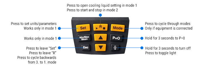 The initial button layout consisted of 9 buttons. And each of them had a certain function. Some would always function, some only in a certain mode, some would change the mode and depending on what was connected to the device the user would get more or less options.